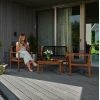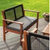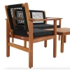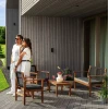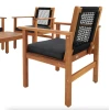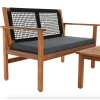 Marata отличается изящным, универсальным стилем, гармонично сочетающим естественную фактуру древесины акации с темными акцентами современного дизайна. Конструкция выполнена из высококачественной FSC-акации, которая славится своей стойкостью к дождю, солнцу и изменениям температур. Особой деталью гарнитура являются спинки из плотного полипропиленового плетения черного цвета, которые не только выглядят стильно, но и отлично поддерживают спину. Благодаря своей упругости, спинки так удобны, что не нуждаются в дополнительных подушках – отдых становится действительно непринужденным.