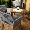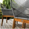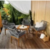 Каркас мебели изготовлен из легкого и стойкого к коррозии алюминия. Это делает мебель не только долговечной, но и мобильной, позволяя легко перемещать ее в зависимости от ваших потребностей. Полипропиленовая нить и промасленная древесина придают эстетичность и прочность конструкции.