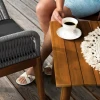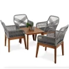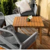 Сердцем комплекта является практичный стол с квадратной столешницей, изготовленный из натуральной акации. Древесина известна своей стойкостью к влаге, грибкам и насекомым, а защитная смазка подчеркивает естественную красоту дерева, придавая ему теплый атласный оттенок.