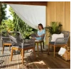 Комплект уличной мебели Piago создан для использования на открытом воздухе. Они выдерживают дождь, солнце, ветер и перепады температур, благодаря использованию качественных материалов, таких как алюминий, полипропиленовая нить и защищенная древесина. Благодаря использованию специальных пропиток на текстиле и древесине, мебель Piago легко поддерживать в чистоте. Подушки остаются свежими, а столешница стола – безупречной даже после интенсивного использования.