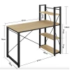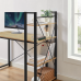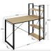 Сочетание черного металлического каркаса и столешницы с текстурой натурального дерева создает элегантный промышленный стиль, идеально вписывающийся в современные интерьеры. Стол с боковыми полками имеет 120 x 60см рабочей зоны, что позволяет удобно разместить компьютер, книги, лампу и другие аксессуары, не жертвуя комфортом.