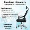 Регулируемый подголовник позволяет настроить поддержку шеи под свой рост, что особенно важно при длительной работе за компьютером. Сиденье изготовлено из дышащей ткани, которая приятна на ощупь, не парит и сохраняет форму даже после интенсивного использования.