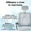 - Спинка из эластичной сетки — повторяет изгибы позвоночника, обеспечивая вентиляцию и комфорт.