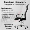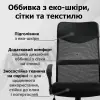 - Комбинированная обивка: экокожа, сетка и текстиль — элегантный вид и правильная вентиляция.