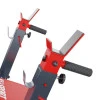 Основное предназначение снаряжения – обеспечить надлежащую защиту во время жима штанги. Для этого используются два красных регулируемых кронштейна, а также два безопасных изогнутых толстых листа металла, приваренных к конструкции. Красный замок предотвращает случайное перемещение подставки, что может представлять опасность для здоровья.