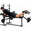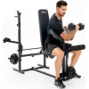 Его оборудование включает, среди прочего, регулируемый молитвенник, позволяющий тренировать мышцы рук. Также есть жим ногами с возможностью дополнительной нагрузки на 30 кг, сплит-жим и дипхолдеры.