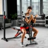 Тренировочная скамейка HS-1095 с партой Скотта от Hop-Sport с подставками используется для комплексных силовых тренировок в домашних условиях. Прочная стальная конструкция обеспечивает комфорт и безопасность во время тренировок. В модели HS-1095 можно регулировать отдельные части скамейки – спинку, сиденье, жим для ног, парту Скотта.
