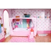 К услугам детей 7 комнат на 3 уровнях. На первом этаже расположена кухня, соединенная со столовой , ванная комната , коридор с лестницей и сад с оградой. Весь первый этаж занимает большая и просторная гостиная , а на верхнем уровне спальня с выходом на террасу . В каждой комнате есть мебель и аксессуары , необходимые для игры, такие как кровать, диван, лампы, столы, плита, ванная или туалет.