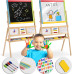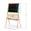 Доска включает все необходимые аксессуары, встроенные часы для обучения пользованию часами, алфавит и абак, две доски в одной – меловая и магнитная – вращающаяся, изготовленная из безопасных для детей материалов, очень устойчива.