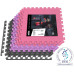 В комплект входят девять частей размером 60x60см каждая (3 серых, 3 фиолетовых и 3 розовых) и 12 элементов, составляющих рамку коврика. Сочетать все части просто и интуитивно понятно, можно быстро изменять конфигурацию мата. Края элементов плотно прилегают друг к другу, создавая ровную поверхность.