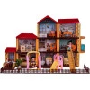 «Волшебный дворец для кукол» – это предложение для детей от 3 лет. В наборе 251 элемент: дворец, мебель, автомобиль, аксессуары и две куклы. Элементы набора изготовлены из пластика высочайшего качества в ярких цветах, которые привлекают внимание ребенка и побуждают к игре. Во дворце вы найдете такие комнаты, как кухня, ванная комната, музыкальная комната, гостиная, спальня, гардеробная, гостиная. Дворец огражден забором, перед дворцом есть детская площадка с горкой и качелями и зона отдыха со столиком, стульчиками и зонтиком. Дворец оснащен подсветкой, в комплект входит 5 ламп, питающихся от батареек AG13, всего 15 штук.