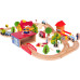 Набор содержит 69 элементов, включая сложные формы путей, стрелочные переводы, мосты, здания, железную дорогу и даже вертолетную площадку.
