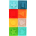 Зверята в наборе включают головы лягушки, коровы, собаки и кролика, внизу которых расположены кубики с разными узорами на стенках. Текстуры будут ощущаться под пальцами.