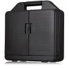 В отличие от моделей в картонных коробках этот микроскоп поставляется в жестком пластиковом кейсе .