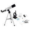 Подарочный набор Optima Universer – это не только телескоп и микроскоп, но и множество дополнительных полезных аксессуаров, которые создадут увлекательную игровую атмосферу для ребенка. В то же время учебный набор откроет вашему ребенку дверь в увлекательный мир астрономии и микроскопии, и позволит показать то, что чаще всего родителям сложно передать словами. Телескоп с 60-кратным увеличением позволит увидеть и мысленно отправиться в путешествие по лунным кратерам, а микроскоп с максимальным увеличением в 1200 крат легко увеличит изображение инфузории туфельки до размеров настоящей туфельки.