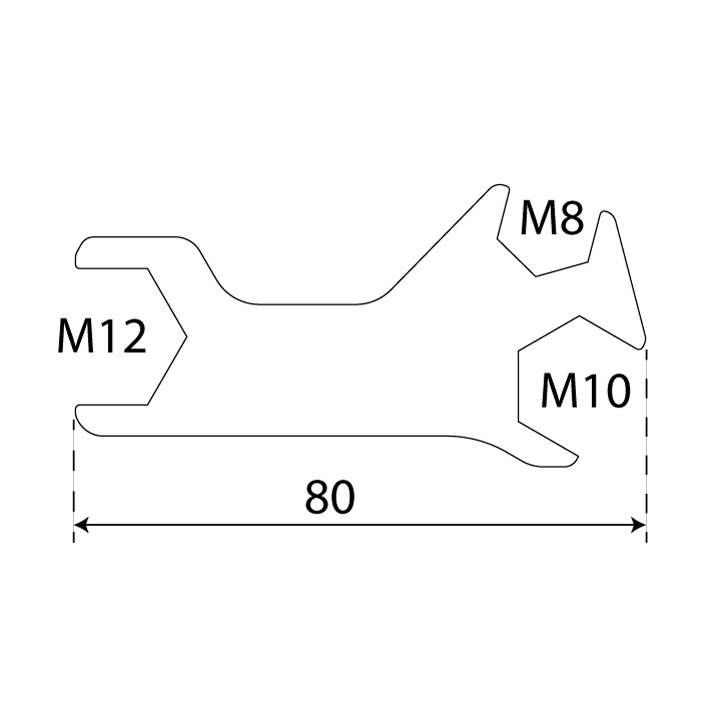 Наш гаечный ключ был специально подготовлен для завинчивания нашего оборудования, имеющего три основных типа винтов – M8, M10, M12.