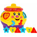 Игрушка имеет развивающую функцию, то есть сортировщик по стенкам горшка. В набор входят 6 разноцветных блоков, которые нужно подобрать к форме отверстий. На блоках есть буквы алфавита или цифры. Таким образом вы можете заменить игру, и вместо фигур ребенок научится распознавать первые буквы и цифры.