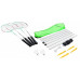 В набор входят: 4 ракетки, 2 нейлоновых волана, 1 сетка для бадминтона + оттяжки и 4 пластиковых колышка, размер сетки 610x60 см, 2 стойки из трех элементов (макс. высота стоек примерно 170 см), 1 прочная сумка - обложка, содержащая обложка.