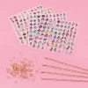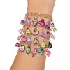 Набор включает в себя все необходимые для создания четырех браслетов: листы с шармами-стикерами, цепочки для браслетов, металлические кольца для соединения элементов и подробную инструкцию. Этот комплект позволяет легко и быстро реализовать любые творческие идеи, экспериментировать с формами, цветами и стилями.