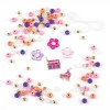 В наборе предусмотрено все необходимое для создания пяти ярких браслетов: прозрачный эластичный шнур длиной 2 метра, набор сменяющих цвет белых бусин, разноцветные и золотые бусины, а также стильные шармы в виде цветков и металлические декоративные элементы. Для удобства хранения и организации компонентов прилагается практичный органайзер, позволяющий поддерживать порядок и хранить все элементы вместе.