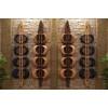 Гантельная плита SwingBell изготовлена из массива дерева и вмещает восемь гантелей , полный комплект. 4 пары кожаных гантелей подвешены на кронштейнах из нержавеющей стали высочайшего качества. Ручки гантелей также сделаны из массива дерева.