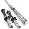Грифы для штанги изготовлены из стали высокого качества и легко выдерживают высокую нагрузку. Хромированное покрытие не только обеспечивает грифу привлекательный внешний вид, но и защищает металл от ржавчины.