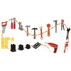 Детский станок с полочками и набором инструментов, напоминающих настоящие, только изготовленные из легко моющегося пластика.