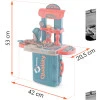 Перед вами детский верстак с полочками и набором инструментов, напоминающий настоящий, только изготовлен из легко моющегося пластика.