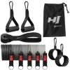 Набор включает в себя 5 эспандеров с сопротивлением от 4,6 до 22,8 кг, которые можно комбинировать между собой. Благодаря системе карабинов и регулируемых застежек, вы можете использовать одновременно несколько резинок, достигая максимальной нагрузки до 68,2 кг. Это позволяет постепенно повышать сложность тренировок в соответствии с вашим уровнем физической подготовки. В комплекте также: