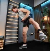 - Отвод ноги назад из положения стоя (эспандер задет, например, за дверь). Работает большая ягодичная мышца