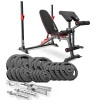 Конструкция тренировочной скамьи с партой Скотта позволяет выполнять самые разные упражнения. Поддержка правильной осанки во время упражнений делает тренировки эффективными и безопасными. Скамейку легко подогнать под свои параметры с помощью простых регулировок. В комплект входят 16 высококлассных чугунных дисков общим весом 95кг, прямой гриф длиной 167см, изогнутый гриф длиной 120см и два гантельных грифа из хромированной стали.