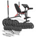 Конструкция тренировочной скамьи с партой Скотта позволяет выполнять самые разные упражнения. Поддержка правильной осанки во время упражнений делает тренировки эффективными и безопасными. Скамейку легко подогнать под свои параметры с помощью простых регулировок. В комплект входят 18 высококлассных чугунных дисков общим весом 115кг, прямой гриф длиной 218см, изогнутый гриф длиной 120см и два гантельных грифа из хромированной стали.