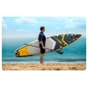 Доска изготовлена из многослойного PVC, устойчивого к ультрафиолету и оснащена антискользящим покрытием EVA, которое придает безопасности и комфорту. Благодаря трем съемным плавникам SUP легко адаптируется к разным условиям — хорошо держит курс на спокойной воде и остается маневренным во время активного катания.