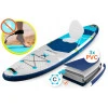 Доска изготовлена из многослойного PVC и технологии Drop Stitch, что обеспечивает высокую жесткость после накачки. Толщина 15 см и ширина 84 см создают стабильную платформу, выдерживающую нагрузку до 140 кг. Антискользящее покрытие EVA придает безопасности и комфорт, позволяя кататься даже босиком. Благодаря трем съемным плавникам доска легко адаптируется к разным условиям — хорошо держит курс на спокойной воде и остается маневренной во время активного катания.