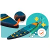 Доска изготовлена из многослойного PVC, устойчивого к ультрафиолету и оснащена антискользящим покрытием EVA, которое придает безопасности и комфорту. Благодаря трем съемным плавникам SUP легко адаптируется к разным условиям — хорошо держит курс на спокойной воде и остается маневренным во время активного катания.