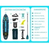Комплектация : SUP-доска, рюкзак, насос (двойного действия), плавники, страховочный ремень (лиш), ремонтный комплект, плечевой ремень, водонепроницаемая сумка для телефона, алюминиевое весло, инструкция пользователя