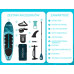 Комплектация : SUP-доска, рюкзак, насос (двойного действия), плавники, страховочный ремень (лиш), ремонтный комплект, плечевой ремень, водонепроницаемая сумка для телефона, алюминиевое весло, инструкция пользователя.