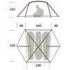 - Полы внутренней палатки: 70D полиэстер 95 г/м² с термоизолированным полиуретановым покрытием, водоотталкивающий, огнезащитной отделкой, водостойкость 8000 мм.