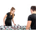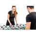 Игровое поле с нейтральным зеленым покрытием не отвлекает игроков и обеспечивает полный контроль над траекторией мяча. Ручные счетчики голов размещаются с обеих сторон поля. Фигурки для настольного футбола, установленные на стальных направляющих, фиксируются резиновыми стопорами. Настольный футбол изготовлен из закаленной плиты МДФ, покрытой слоем ламината для большей стойкости к истиранию. Фигуры игроков размещаются на столе по системе 3:5:2:1. В набор входят два мяча.