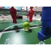 - Игровое поле из закаленного стекла толщиной 5 мм с наклоном по периметру для предотвращения возникновения "мертвых зон". Белые линии на зеленом фоне нанесены методом шелкографии, воспроизводя футбольное поле.