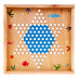 Первая и вторая игра – трильма, также известная как китайские шашки, расположена с обеих сторон основания. Он предполагает размещение фигур определенного цвета в углу звезды и исполнение ходов так, чтобы все фигуры были на противоположном конце перед противниками. В игре могут участвовать 2-3 человека.