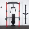 В комплекте с клеткой также есть складная скамья, позволяющая выполнять упражнения со штангой, опорными лентами или гантелями. Скамья удобная и крепкая, а после окончания упражнений вы можете сложить ее параллельно стене. На скамье можно выполнять такие упражнения, как жим штанги или гантелей от груди, подъемы ног лежа, тяги гантелей и т. д. Скамья позволяет тренироваться с акцентом на стабилизирующие мышцы и кор.