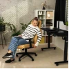 Спинка офисного кресла Adelo изготовлена из прочного ПВХ-материала (экокожа), который обеспечивает надежную поддержку спины. Толстый слой эластичной пены придает комфорт, помогает избежать усталости и способствует правильной осанке. Высота спинки 73см делает кресло удобным для юзеров ростом от 160 до 190см, обеспечивая безупречную поддержку. Регулируемые подлокотники придают удобство, разгружая плечи и руки.