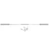 GOP 200, 180, 150, 120см HMS – прямая олимпийская стойка для пружинных зажимов. Для обеспечения надежного и удобного хвата рукоятка имеет тщательную насечку. В комплект входят два винтовых зажима. Зажимы этого типа обеспечивают стабильное положение веса на грифе при выполнении упражнений. Гайки имеют резиновые уплотнители для предотвращения ослабления и погрузки. Часть штанги имеет резьбу, позволяющую быстро и безопасно размещать груз. Инвентарь изготовлен из цельнолитого стального прута, прошедшего процесс закалки. Диаметр грифа 28 мм (GO 120:25 мм) обеспечивает высокую прочность и комфорт при выполнении упражнений. Применяемая технология хромирования грифа гарантированно сохранит его внешний вид в течение длительного периода использования, а также является лучшей защитой от ржавчины. Спецификация: Материал: закаленная сталь Финишная часть грифа: рифленая Оснащенный предохранительными втулками Диаметр для нагрузок: 50 мм Защита от коррозии: хром Количество зажимов: 2 штуки
