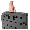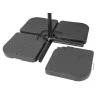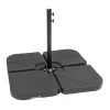 Основание садового зонта Di Volio состоит из четырех отдельных элементов размером 50*50см, каждый из которых имеет отдельную ручку и соответствующие крепления. Благодаря этому ее не только просто разбирать/собирать, но и легко переносить с места на место. Общий вес продукта –10кг, высота – 7,5см, а объем – 4*15л.