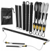 - В набор входят резинки: 2 резинки по 14кг, 2 резинки по 23кг, 2 ремешка на лодыжки, сложная из 3 частей палка, сумка для хранения.