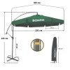 Зонтик изготовлен из прочного полиэстера 180 г/м. кв., защищающая от дождя и солнца, с темно-зеленым цветом, который адаптируется к любому пространству и обеспечит большой приятный оттенок.