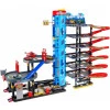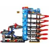 Кроме элементов конструкции, в набор входит 10 разноцветных пружин и мини-модель вертолета. С одной стороны паркинга есть 6 уровней крытых парковочных мест для автомобилей. Добраться до них можно, спустившись с полукруглых горок или с помощью спрятанного в шахте лифта.