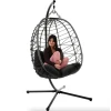 Устойчивая конструкция из оцинкованной стали обеспечивает надежность и безопасность использования. Кресло выдерживает нагрузку до 150 кг, что делает его универсальным выбором для всех членов семьи. Корзина из экологичного ротанга и веревки демонстрирует высокую устойчивость к влаге, УФ-излучению и другим погодным факторам. Эти материалы не только практичны, но и придают креслу эстетический вид.