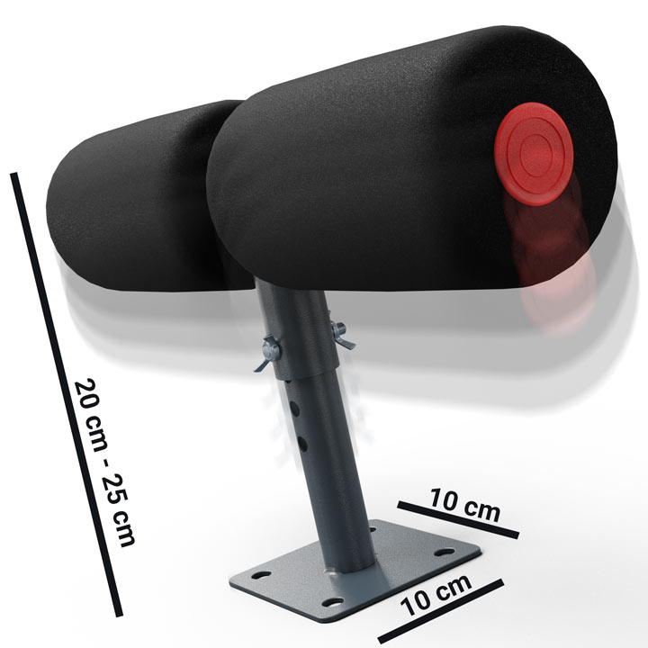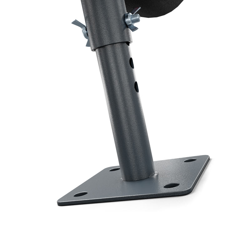 Два металлических винта-бабочки гарантируют, что вы сможете менять высоту в любой момент буквально несколькими движениями. Открутите их полностью, чтобы положить стабилизирующую нагрузку на трубу. В металлической пластине есть отверстия, благодаря которым вы можете прикрепить ее земли – тогда вы сможете тренироваться без погрузки!